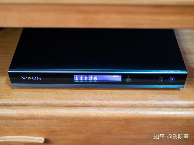 外观的话和一般的高清播放机也没有什么区别。正面有一个硕大的LED显示屏,一个触摸的开关按键,以及一个USB3.0的接口。
