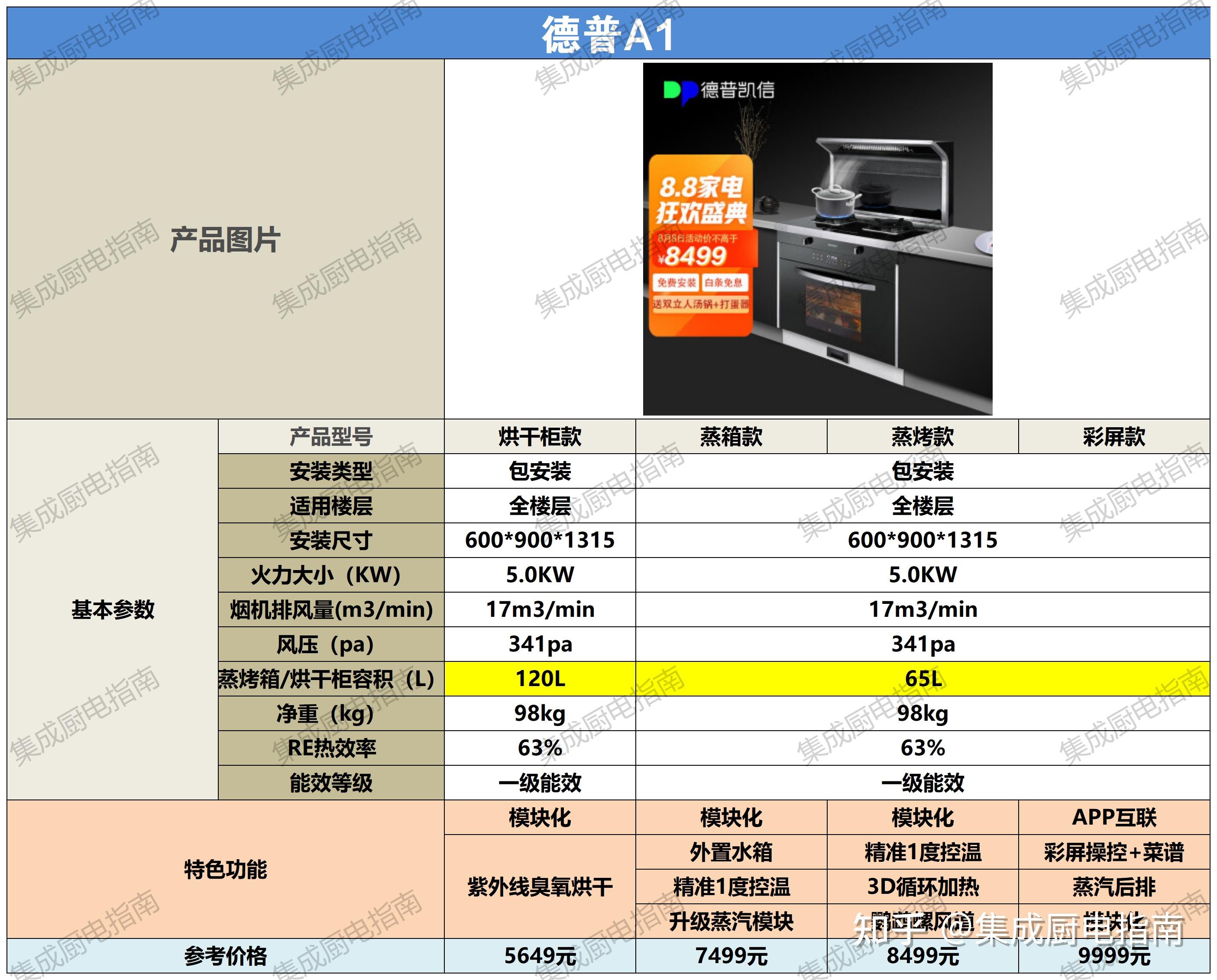 可以看到,德普A1系列在整个万元以内单论价格中规中矩,但是其值得购买的亮点就是其模块化以及具备的电热自清洗,并且A1头部配备保温板,如果说对比的话,只有万家乐集成灶的蒸烤一体款,不过万家乐的蒸烤一体采用的是OME代加工模式,整体的做工品质用料,还是德普A1更为上乘。