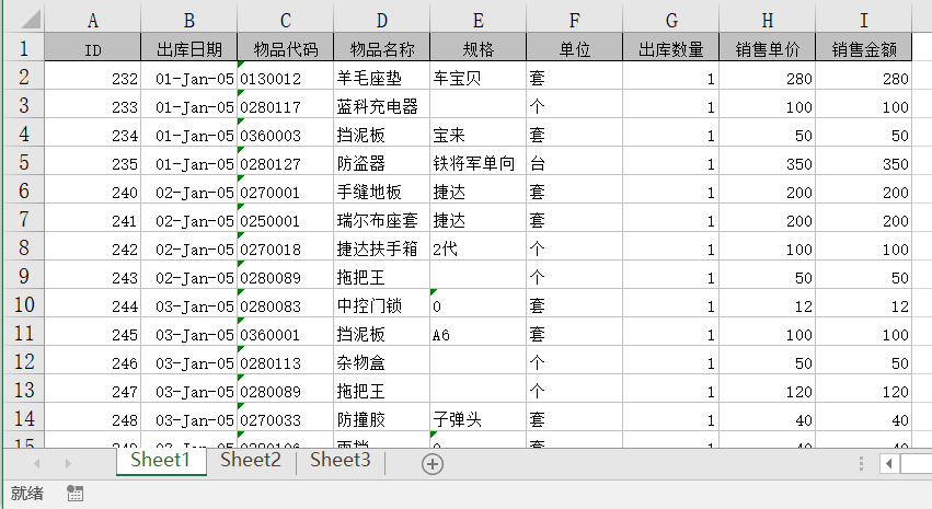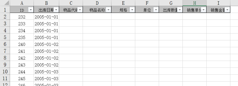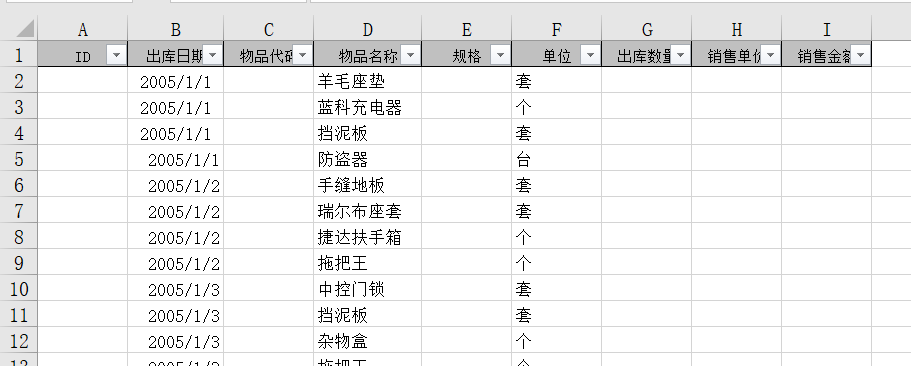例3:在sheet1中筛选出库日期是2005-1-4的数据。
