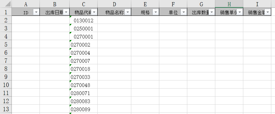 例12:在ChuKu中对物品代码列进行筛选不重复的数据。