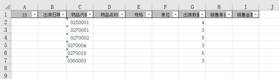 例11:在ChuKu中筛选指定字符:出库日期、物品名称、单位。