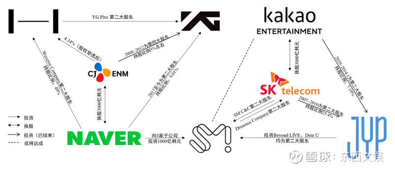联系到今年下半年YG娱乐当家女团将在Weverse粉丝社区粉墨登场,可以认为 韩娱四大社已经两两“歃血为盟”,这种格局的形成又与Naver和Kakao等大企业进军KPOP界的刺激密切相关。
