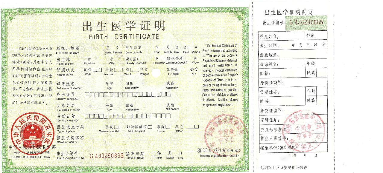 1、出生医学证明,在医院生小孩的时候会有