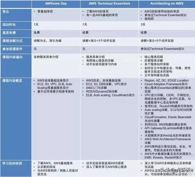 官方培训都是AWS原厂培训师,获得了AWS的授权和认证。培训价格和时长如下图所示。