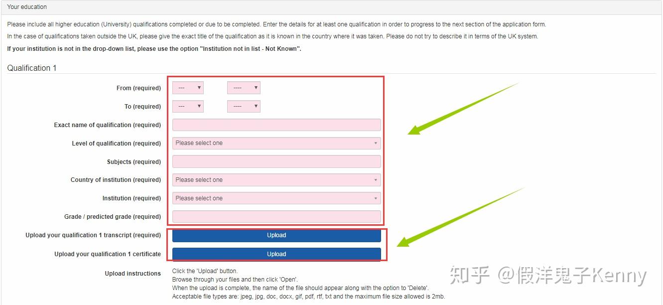 10. 填写你的本科教育经历,并上传成绩单和在读证明(或者学位证+毕业证), Level of qualification 选择 Overseas First Undergraduate Degree (BA BSc),