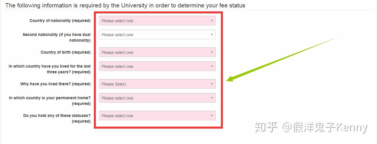 如实选择或者填写你的国籍相关信息,这和你的学费有关; Do you hold any of these statuses? 选择 Non-EU EEA Citizen;Are you applying as (required)? 选择 Overseas Applicant