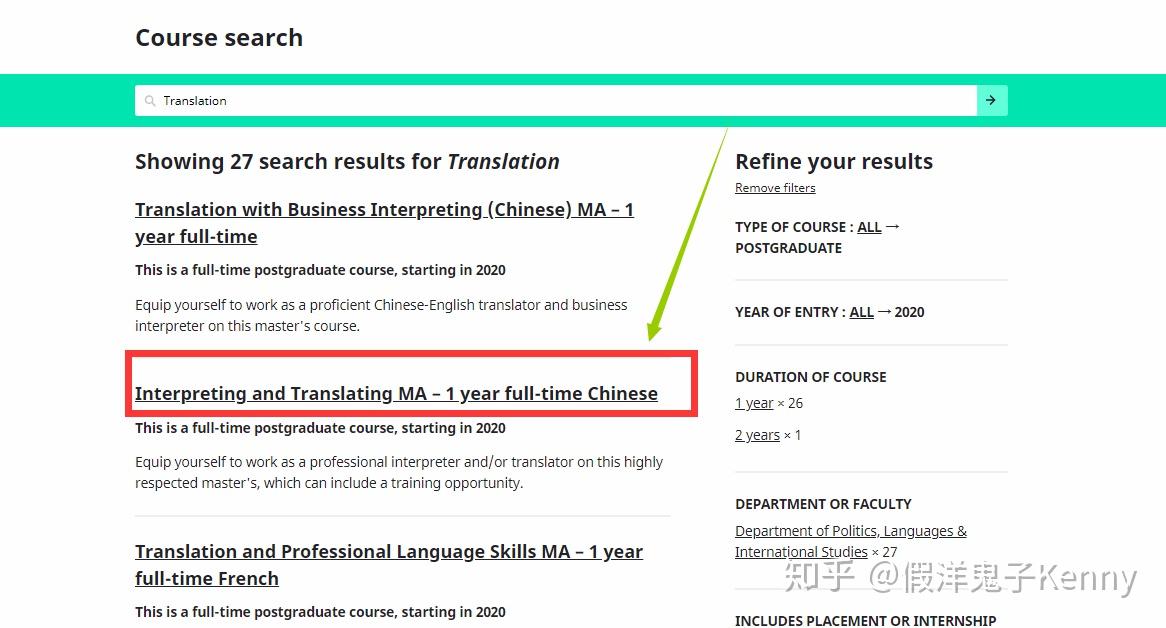 白框内输入你要申请的专业,注意授课类型是 taught postgraduate