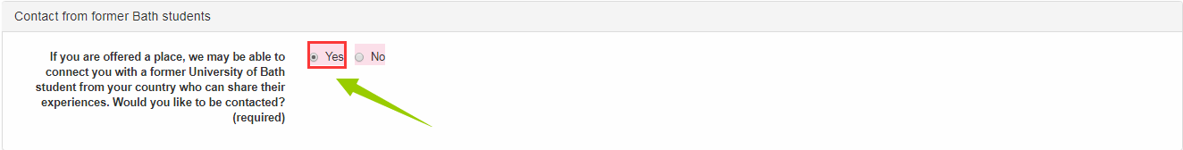 如果你被 offer 了,巴斯大学会安排一个你的学长(在你的国家)联系你,你是否愿意被联系?选择 Yes 就行