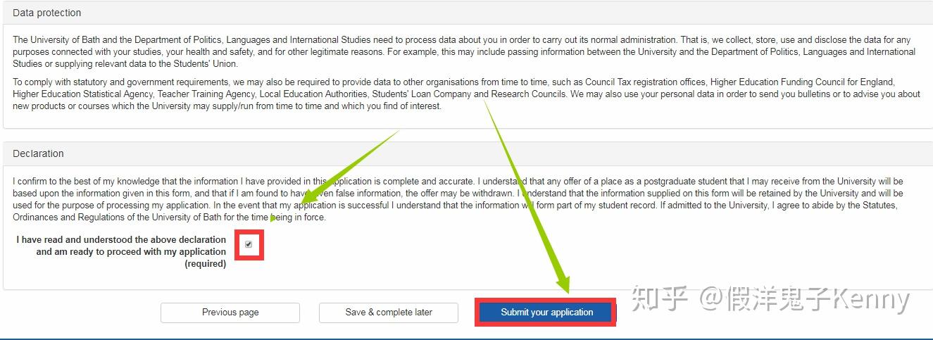 然后勾选 I have read and understood the above declaration and am ready to proceed with my application, 最后 Submit your application