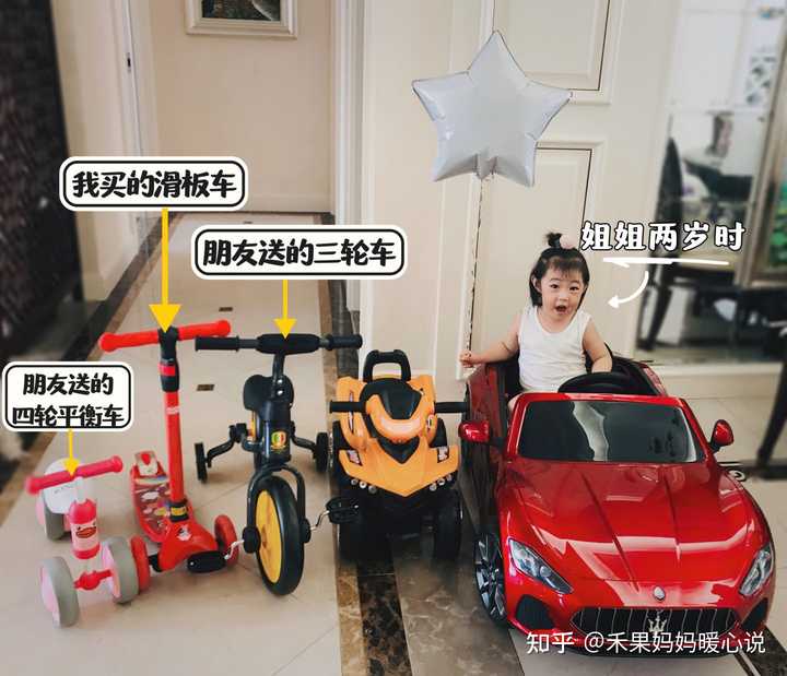 以我家小姐姐为例,在她三岁之前,大运动发育一直都是中规中矩的水平。家里有朋友送的三轮车、四轮车,她都没兴趣;还有一台我精心挑选的滑板车,她也一直学不会。