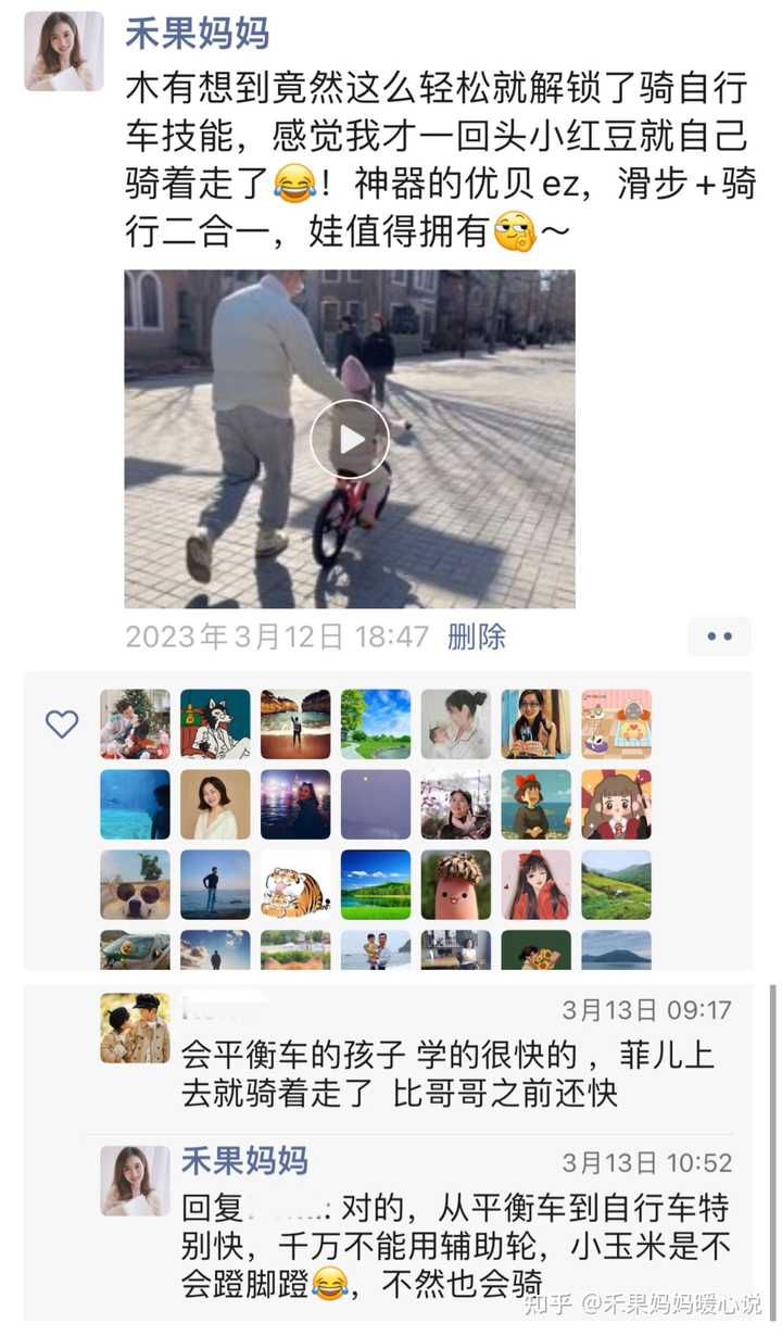 当天我还激动地发了条朋友圈,好友们也纷纷赞同说孩子会骑平衡车的话,学骑自行车so easy!