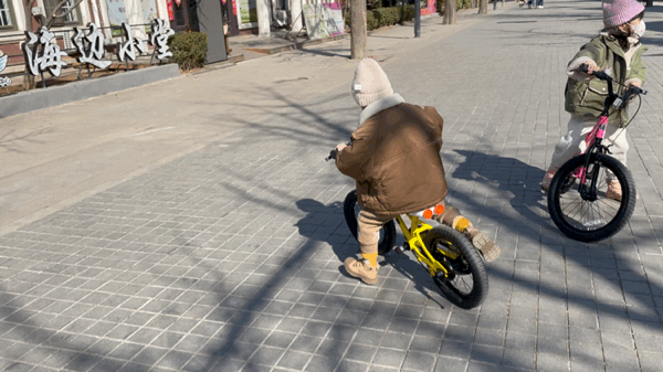 另外,3岁以上的小朋友出门再坐婴儿车就不合适了,也不方便,但是大人遛弯或跑步时,孩子跟着难免觉得无聊、走不动路,这时候骑平衡车就是最佳解决方案了。我们家平时就经常带娃去公园、广场或滨海栈道溜达,小姐弟俩骑着自己的车子,和大人一同出行,互不干扰,各得其乐,真的省心又省力!