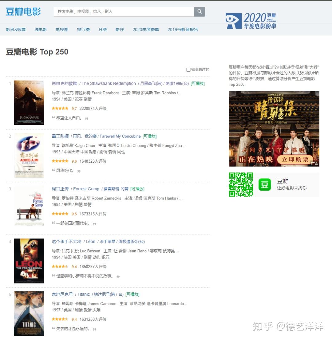 豆瓣电影TOP250榜单第1名:肖申克的救赎