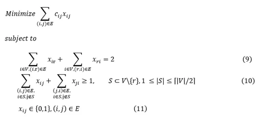 基于STSP问题, MST其数学模型为(利用r为起点)