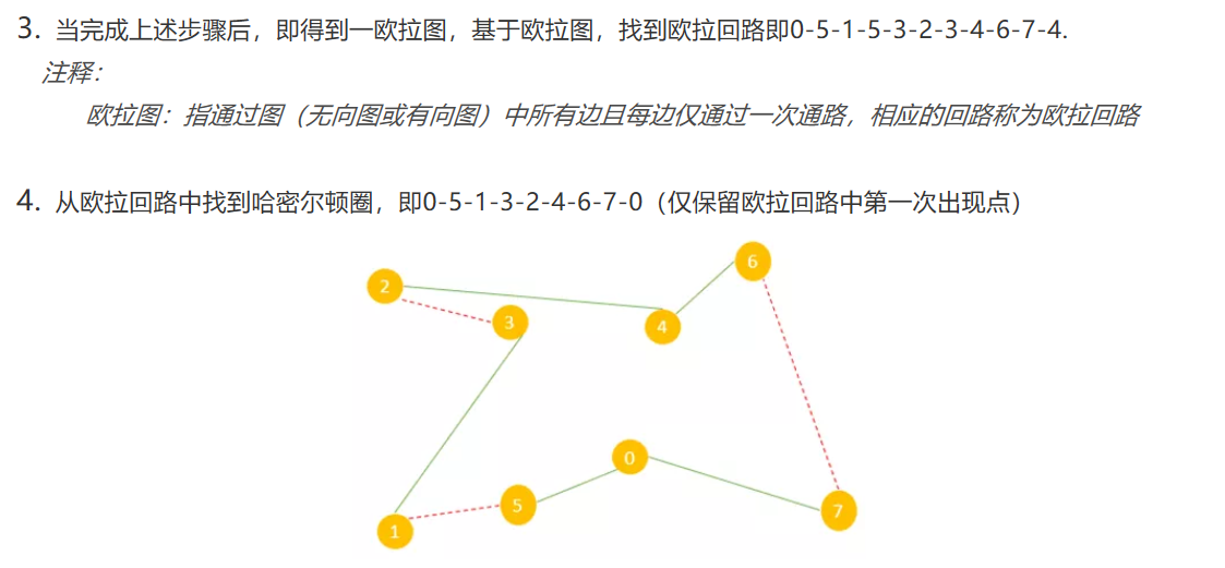 基于上述结论,我们可以通过一系列变化,找到变化图后的哈密尔顿圈作为其相对最优解。那么接下来便是启发式算法(Christofides heuristic)的步骤介绍:
