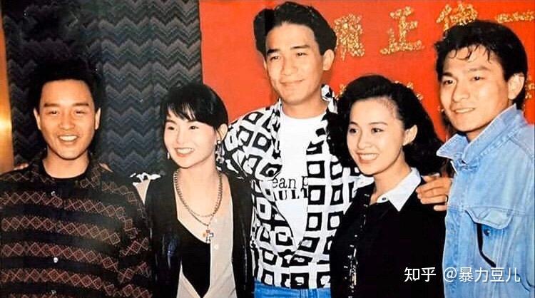 33,《阿飞正传》幕后合照 从左到右依次 张国荣 张曼玉 梁朝伟 刘嘉玲 刘德华