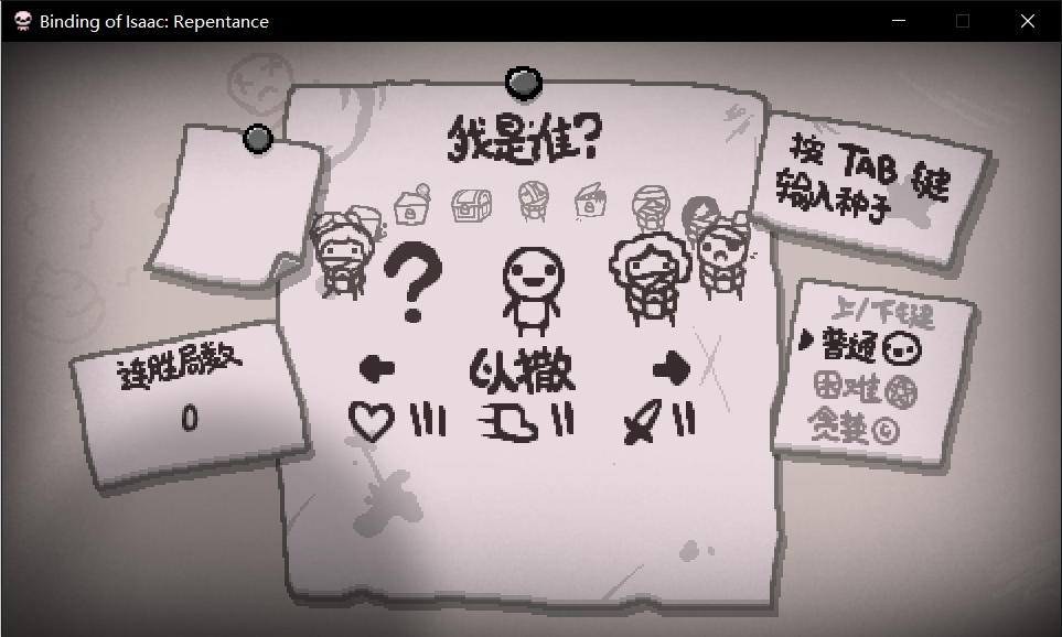 退出后选择新游戏,选择人物以撒(刚开始只有以撒,人物解锁之后会讲)
