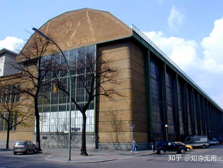 1909年,贝伦斯设计的AEG涡轮机工厂[AEG-Turbinenfabrik]落成,被认为是早期现代主义经典建筑设计。工厂长100米,基本结构由钢和玻璃制造,巨大的屋顶看起来像很重,但实际结构却很轻。两侧的玻璃窗高达15米,能尽可能为室内提供更多的光线。