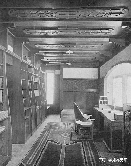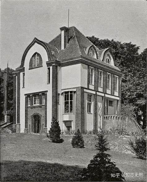1899年,贝伦斯接受了黑森大公恩斯特·路德维希[ Grand Duke Ernst-Ludwig of Hesse]的邀请,成为第二位进驻达姆施塔特艺术家园[Darmstadt Artists' Colony]的艺术家。他很快就受到同行的影响,1901年在那里建造了自己的房子,并构思设计了室内家具、毛巾、陶器等物品,这贝伦斯第一建筑设计,也标志着他由青年风格转向理性主义的转折。