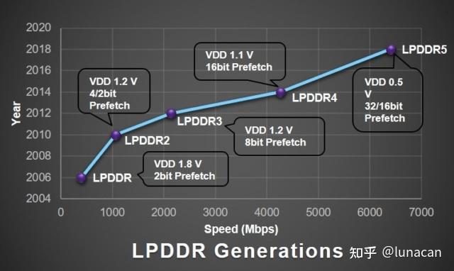 目前主流的RAM有LPDDR5和LPDDR4,其中LPDDR5是最新的标准。LPDDR5以6400MT/S的速度运行,是LPDDR4速度的两倍,比LPDDR4X的4266MT/S快了50%。