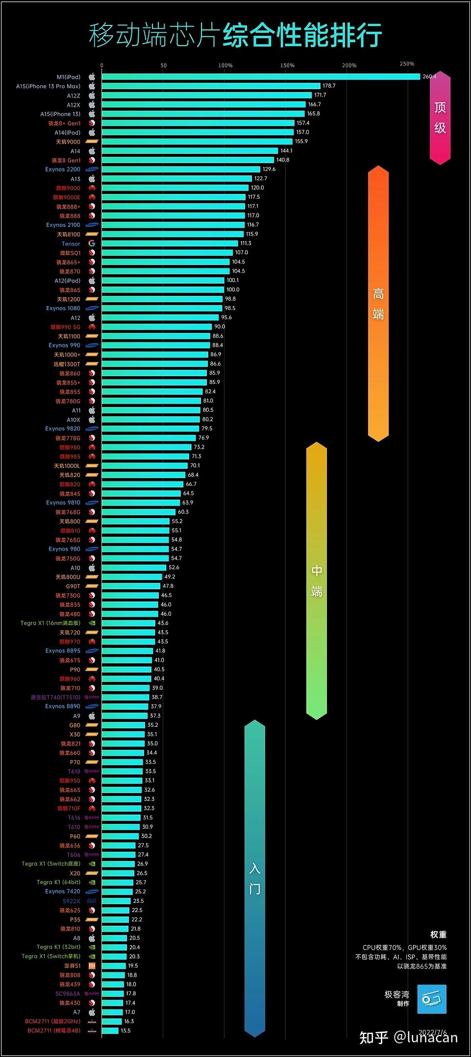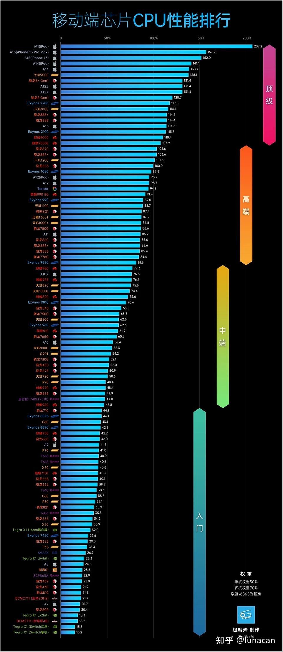 手机移动处理器性能天梯图(2020年7月更新)