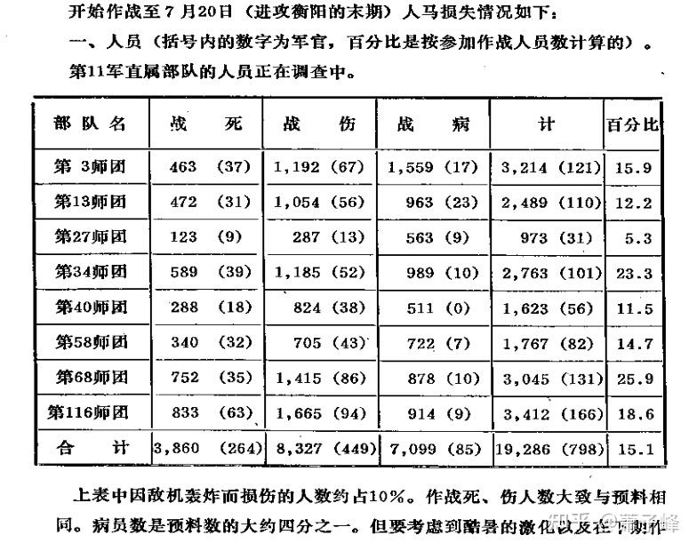 据该师团战史,自一号作战爆发到战败为止,全师团死殁数字如下: