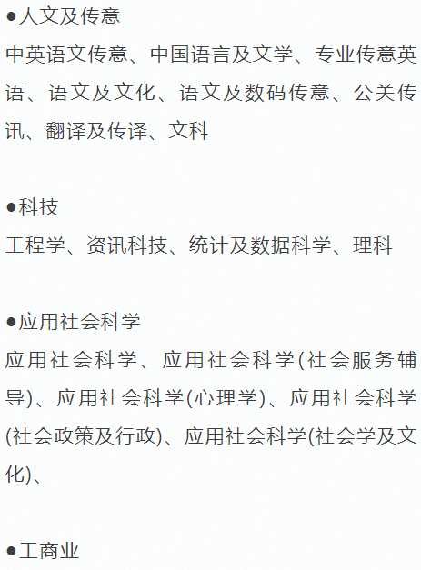 副学士学位课程开设的种类众多,达到近150+,包括: