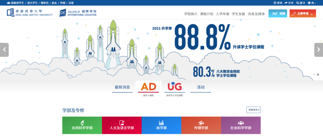 香港浸会大学副学士的官网数据表明,88.8%的学生成功升读学士学位,78.7%的学生成功升读香港八大名校。