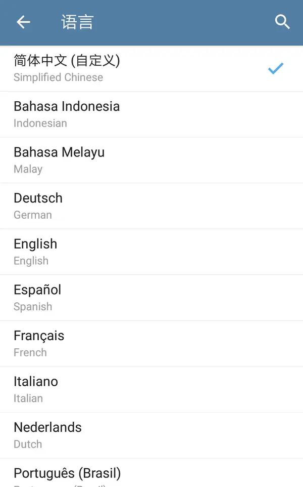 Telegram 官方只开放了语言包翻译接口, 官方没有提供中文语言包