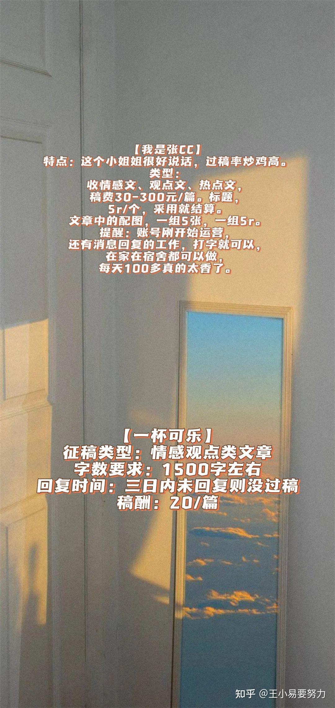 3、文章30-300r/篇,情感文、成长文、干货文、明星偶像等,大量缺稿