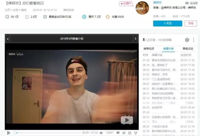 正如姬前面所说,人们喜欢看歪果仁对中国事物的看法感想,再加上拂菻坊的视频比较风趣幽默,本人也会中文,拂菻坊成为了b站粉丝最多的UP主之一