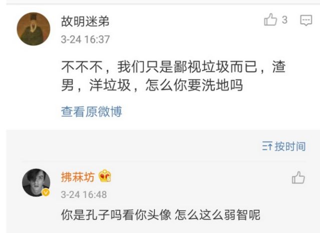 拂菻坊把网友的言论攻击上升到种族歧视的高度。
