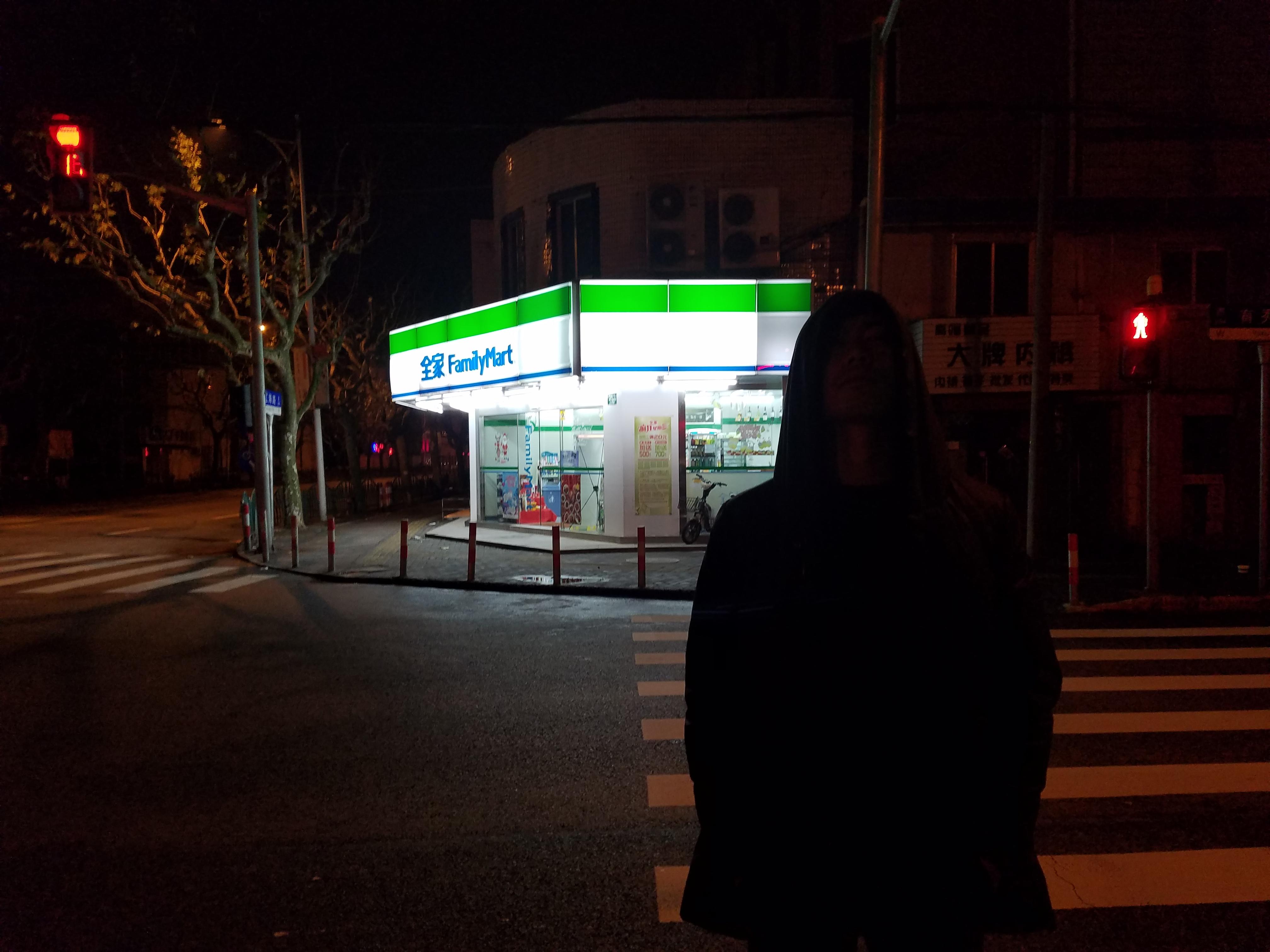 第一天凌晨三点还在全家门口拍了张照,乡下人进城,留念,手动捂脸。