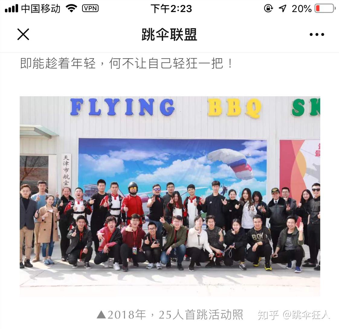 其实国内跳伞早在2010年已经开始出现了,只是由于社会、经济、文化等问题,一直发展的比较缓慢。 直到最近几年由于互联网、短视频平台的崛起,才慢慢给大家熟知 (但也只是相对来说,其实还是有很多人不知道)。
