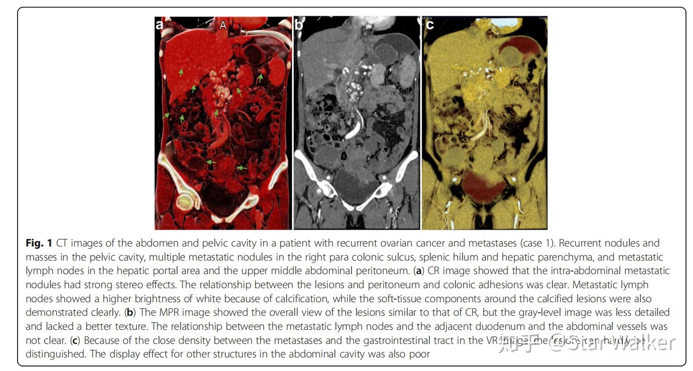 这篇文章实际上是对一篇学术论文的简要报道。这篇学术论文发表在Journal of Ovarian(卵巢) Research杂志上,杂志影响因子2.989。论文题目是“CT of ovarian cancer: 3D cinematic rendering for preoperative evaluation”,网上可以直接下载PDF全文。 CT of ovarian cancer: 3D cinematic rendering for preoperative evaluation (biomedcentral.com) 。论文的内容相对简单,选择了2例卵巢癌患者CT影像,对比了电影渲染和体绘制渲染的效果,在结论中认为,电影渲染能够更好的显示卵巢癌组织,为手术医生提供更好的术前认知。
