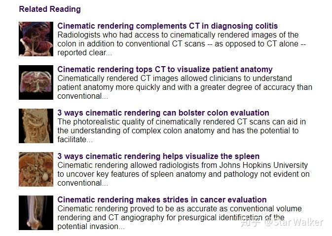 列表很长,但这还只是其中一部分,并不是全部。如果大家随机挑选几篇浏览之后,就会发现,虽然每篇文章所面向的临床专科不同,但在用户感受或评价部分,几乎都把电影渲染推荐应用领域归纳到患者沟通和医学教育上。各领域专家尤其推荐将电影渲染用于患者沟通上。摘抄一段原文,大家感受一下,捎带着学习下英文。