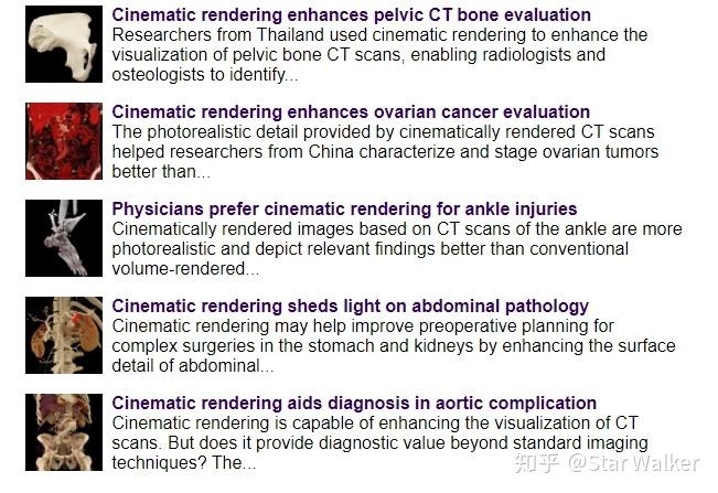 在AuntMinnie上面输入Cinimetic Rendering,能够搜索得到一系列文章,涉及多个临床专科领域。大家可以通过下面的文章摘要截图,来快速了解一下。