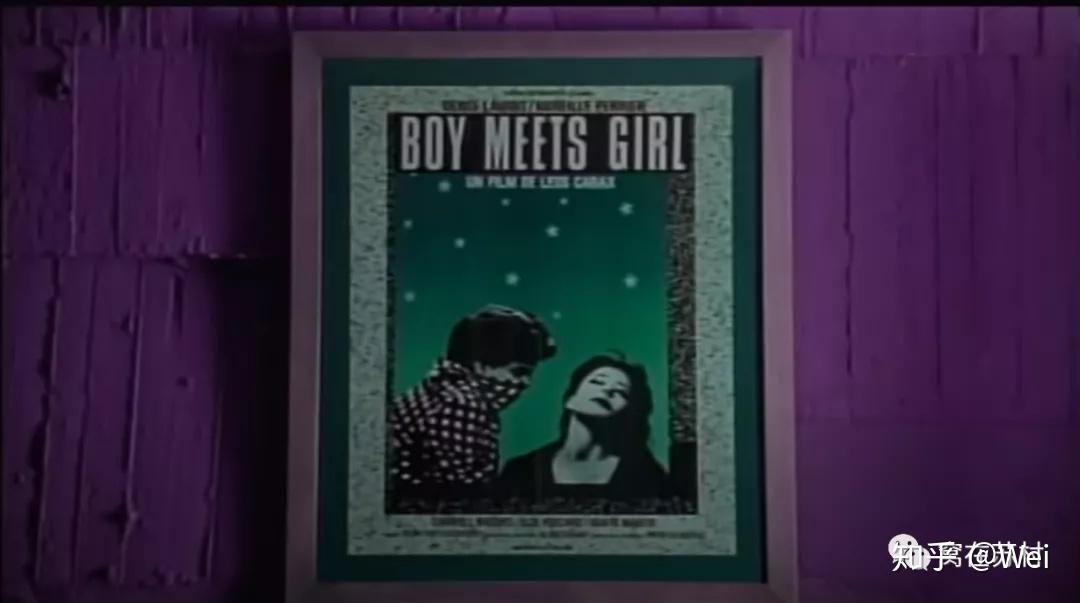 首先,要提一个背景故事,来自贯穿整个MV的那幅装在相框里的电影海报《boy meets girl》。这是一部1984年上映的法国文艺片,讲述的是一位巴黎的年轻导演Alex刚刚失去女友,绝望抑郁之下遇见并且爱上同样刚刚失去男友,消沉轻生的女主Mireille的故事。他们在公寓的对讲机里第一次听见对方的声音,接着在塞纳河边擦肩而过,最后终于在一个上流社会的聚会中相见。坐在厨房的餐桌前,他们进行了一次长时间的深刻而又疏离的对话。导演Leos Carax擅长用诗意的风格展现爱情的复杂和痛苦。整部影片有很重的文艺片气息,基调灰暗,有长篇的对话和独白。感觉《后来》MV的拍摄风格或多或少受到了这部电影的影响。《boy meets girl》电影海报一共出现在了MV的三个不同场景中。