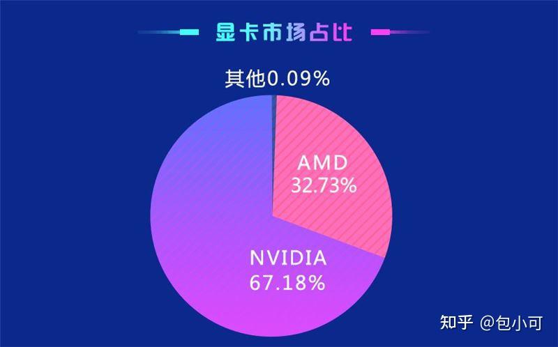 只有百分之一不到。而英伟达依旧是龙头老大,英伟达占据了67.18%的市场份额,n卡取得了主导地位,看来amd公司还需继续努力了。
