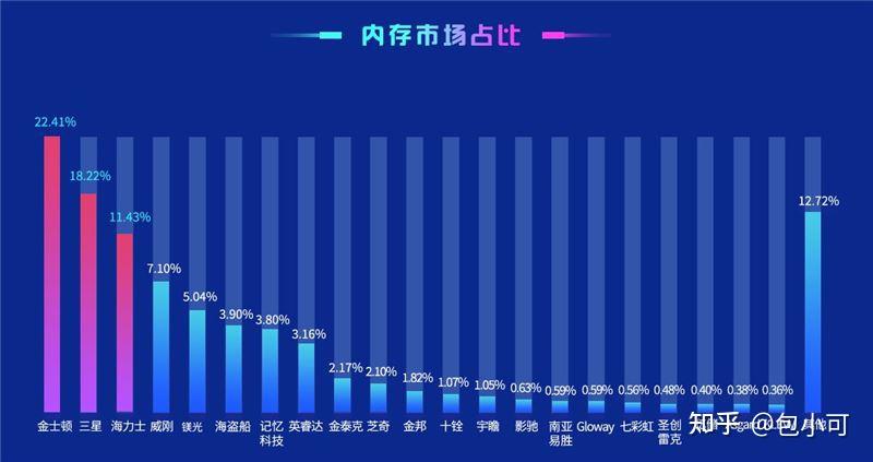 以下是鲁大师2021年内存市场占比图对比,可以看出金士顿品牌一马当先的站在最高处。
