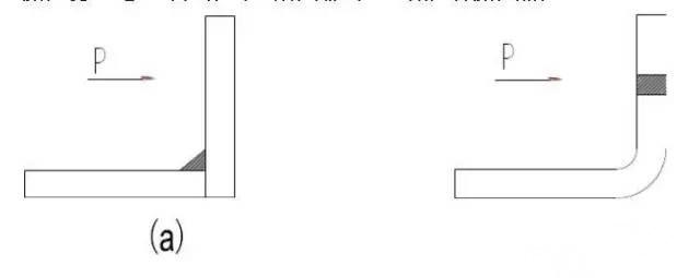 6)焊接端部产生锐角的地方,应尽量使角度变缓;薄板筋的锐角必须去掉,因为尖角处融化。