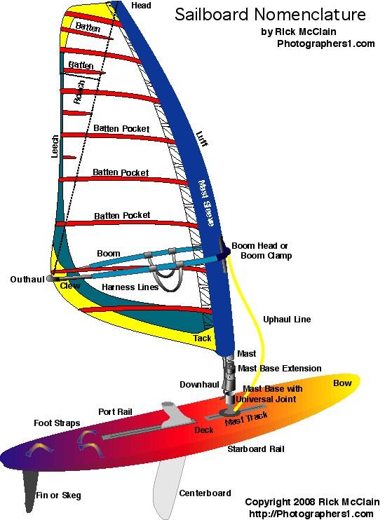 从这里开始,如何装配帆(rig)也成为重要的知识重点,如何根据帆的指示选用合适的桅杆/mast、桅杆底座/extension、横杆/boom,助航带/power line,腰钩/harness。帆板想玩的好,准备和安装知识必不可少。