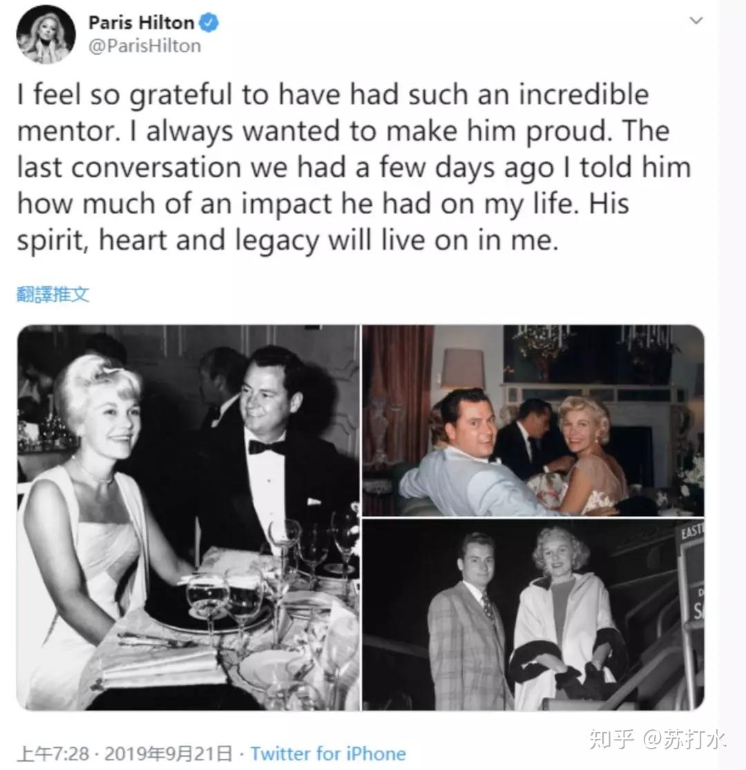 巴伦·希尔顿的孙女、好莱坞女星帕丽斯·希尔顿(Paris Hilton)也发推悼念,她表示,“祖父是一位传奇人物,是一位有远见、聪明、英俊、善良的人,过着充满成就和冒险的生活。”