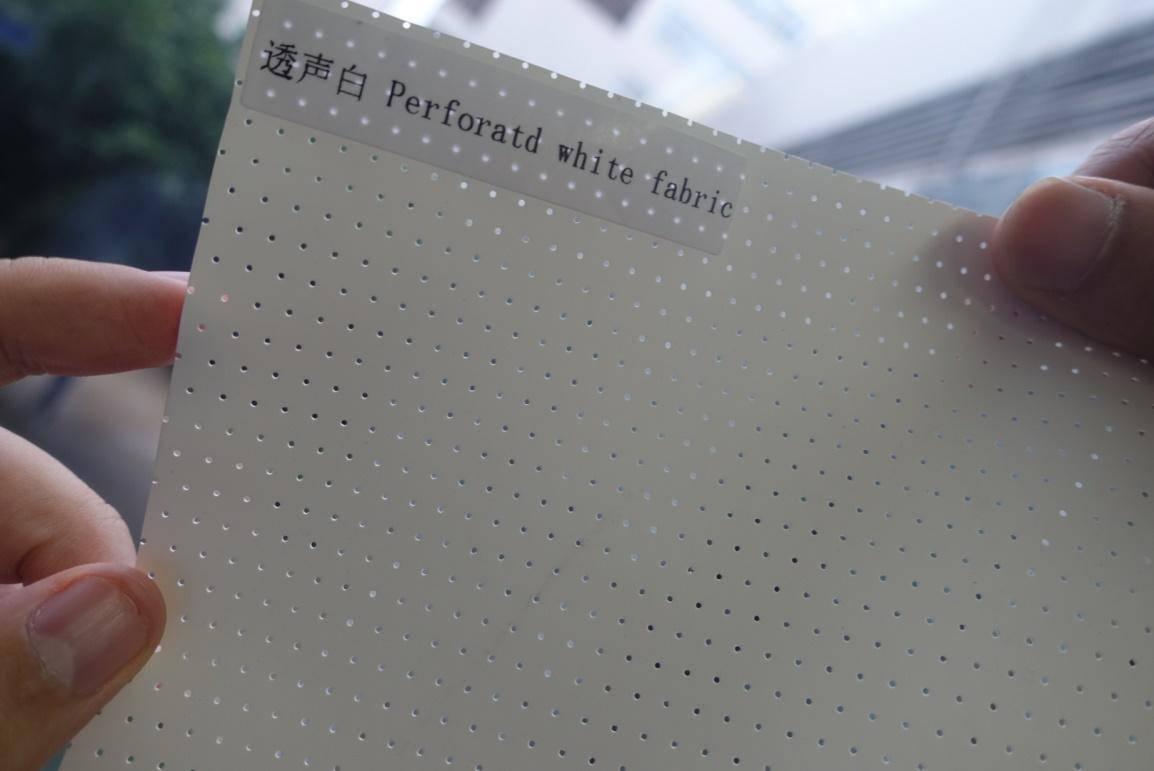 透声幕如上图,幕布上面布满了大小统一,规则分布的小孔,而这些小孔就是用来透声的。投影幕后方的音响透过这些小孔将声音传出,同时这些小孔的大小又要做到尽可能不会对画面的质量产生影响,达到声画合一的境界。