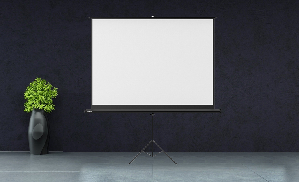 - 支架幕布: 支架幕布很适合公司使用,它不需要像电动幕布、手动幕布、画框幕布考虑屋内墙体的结构,随处都可以安装使用,且价格便宜。但是它也存在不稳,影响观影体验的问题,所以极米君不推荐家庭使用。