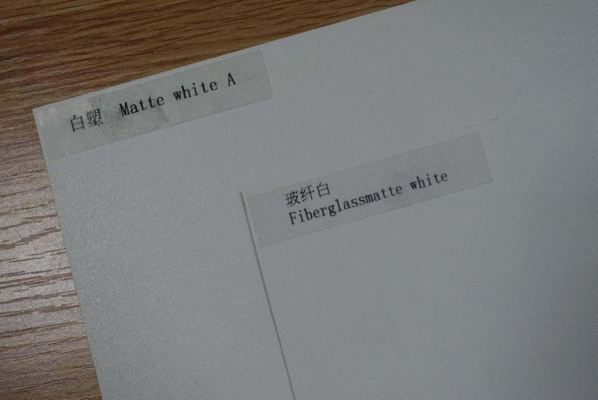 - 白塑&玻纤白: 白塑&玻纤白应该是市面上最常见的两种幕布了,前面聊到投影的幕布能定向反射的光线越多,亮度增益越高。而白塑和玻纤白的最大区别就在这里,玻纤白的表面相对于白塑要更细,可以定向反射的光线更多,所以玻纤白的亮度增益是要高于白塑的,但是实际体验中,极米君认为二者之间的差异并不大,对比的话,才可以看出略微差别。