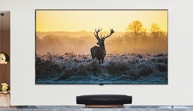 - 画框幕布: 所谓画框幕布,顾名思义,幕布就像油画一样固定在墙体上,用铝架做一个类似画框的架,然后在幕布上扣弹簧使幕布拉平,这是最简单类型的屏幕设置,需要做的就是把它固定到墙上。它相对于前几种没有那么便携,无法回收,需要占据一定空间,所以一直以来其相对于手动&电动幕布就没有那么普及。但是随着激光电视的流行,它独有的优势就凸显出来了,激光电视对于幕布的平整性有极高的要求,稍有不平整,画面就会出现扭曲畸变,而画框幕布采用扣弹簧的方式将幕布拉平,是目前市面上几种幕布里平整性最好的。