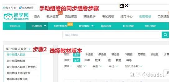1)设置教材版本及考试内容。点击手动组卷的同步组卷,显示如图8所示