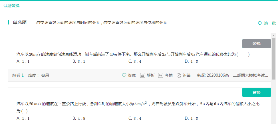 对不满意的题还可以替换掉,点击“换题”就会出现对应该知识点的题库供你选,如图18在看中题右上方点击“替换”试题就换好了,是不是非常智能化。