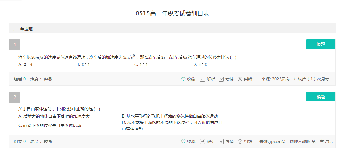 这里要说明的是,在智学网,由于权限问题,只有管理员发布的试题才是考试试题,一般任课老师发布的试题都是叫练习。点击保存好的试卷在我的资源里可以找到。